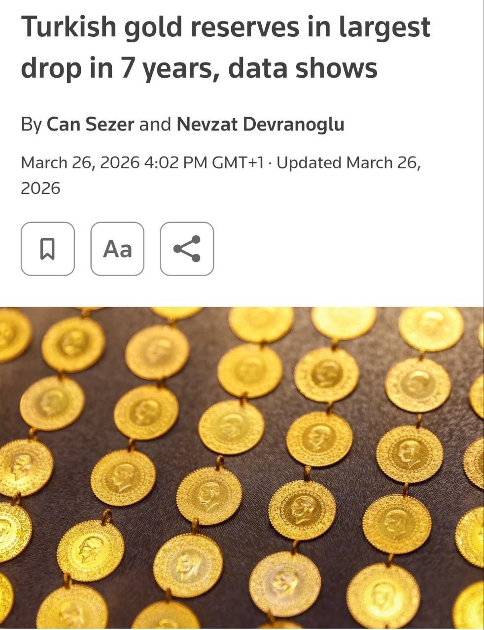 Как сообщает Reuters, за март ЦБ Турции продал 60 тонн золота на 8 млрд долларов.