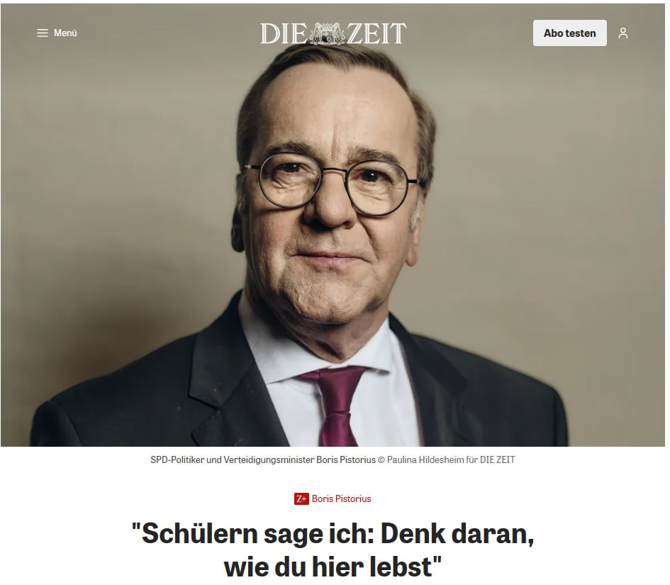 Борис Писториус оказывается не верит в войну между НАТО и Россией