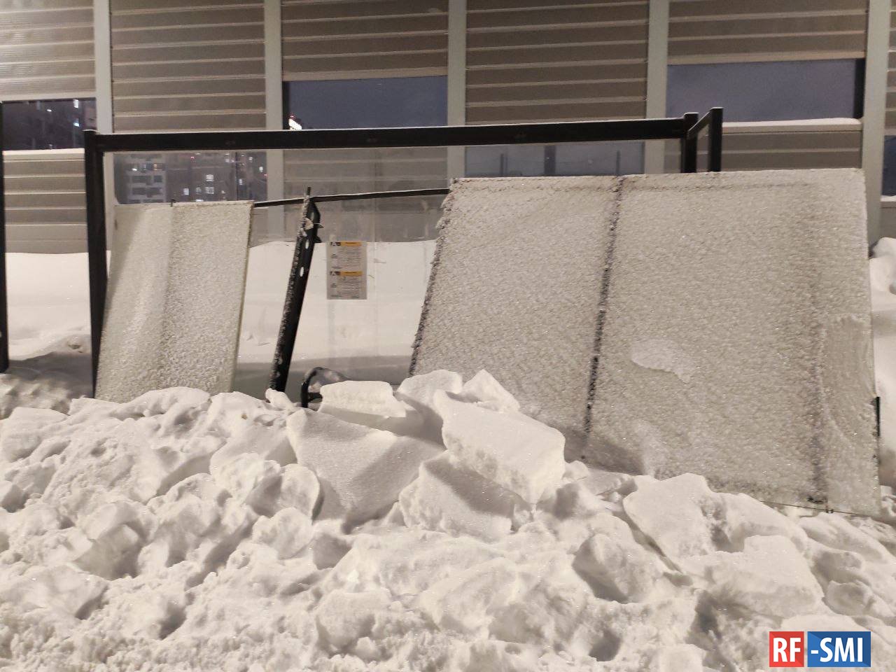 По словам очевидцев, еще утром стеклянная крыша автобусной остановки была цела, но на ней лежало очень много снега.