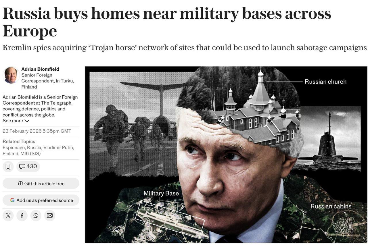 Европейские спецслужбы заявляют, что связанные с Москвой лица приобретают дома, склады, участки и даже острова возле военных объектов и критической инфраструктуры. Речь идет о районах рядом с авиабазами, военно-морскими портами, маршрутами подводных кабелей и энергетическими объектами.