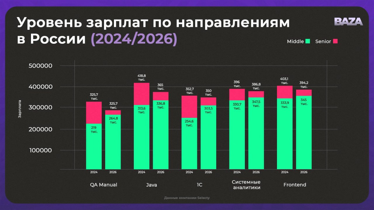 Поэтому IT-рынок становится более плоским — разница в зарплатах между уровнями сокращается.