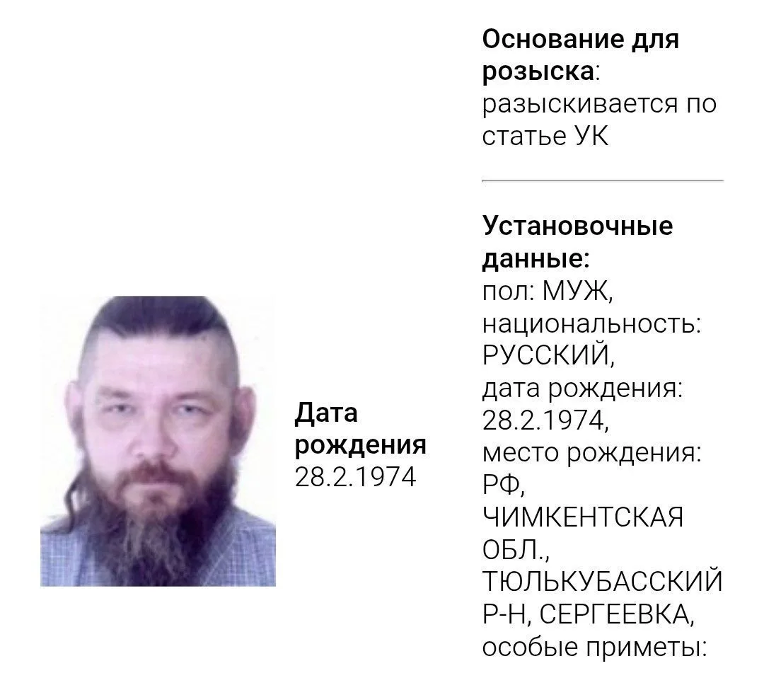 Преступник находится в федеральном розыске по уголовной статье. По какой именно — неизвестно.