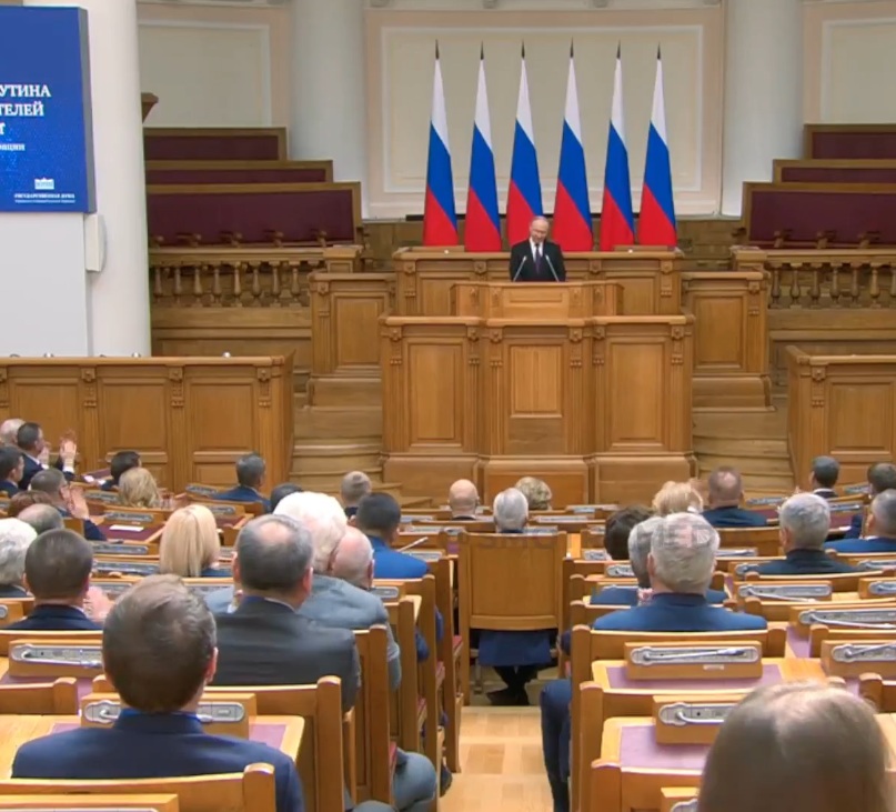 Путин также напомнил парламентариям слова Солженицына, что власть — это не добыча и награда, а тяжелое бремя и труд.