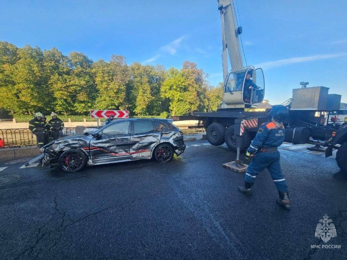 В Петербурге протаранив ограждение в Фонтанку упал автомобиль Порше