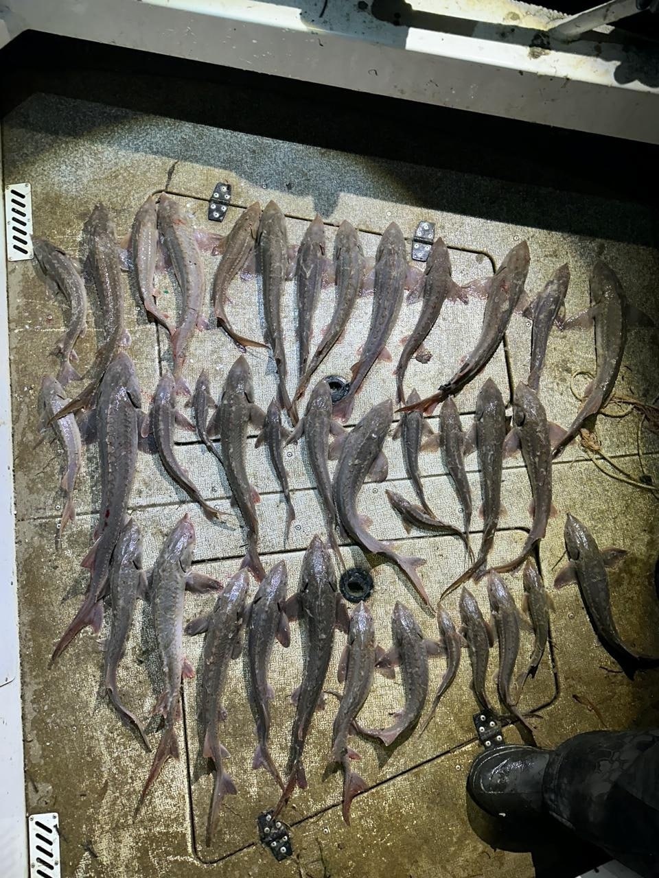 Из них 12 осетров и 2 стерлядей отпустили, они ещё были живыми.