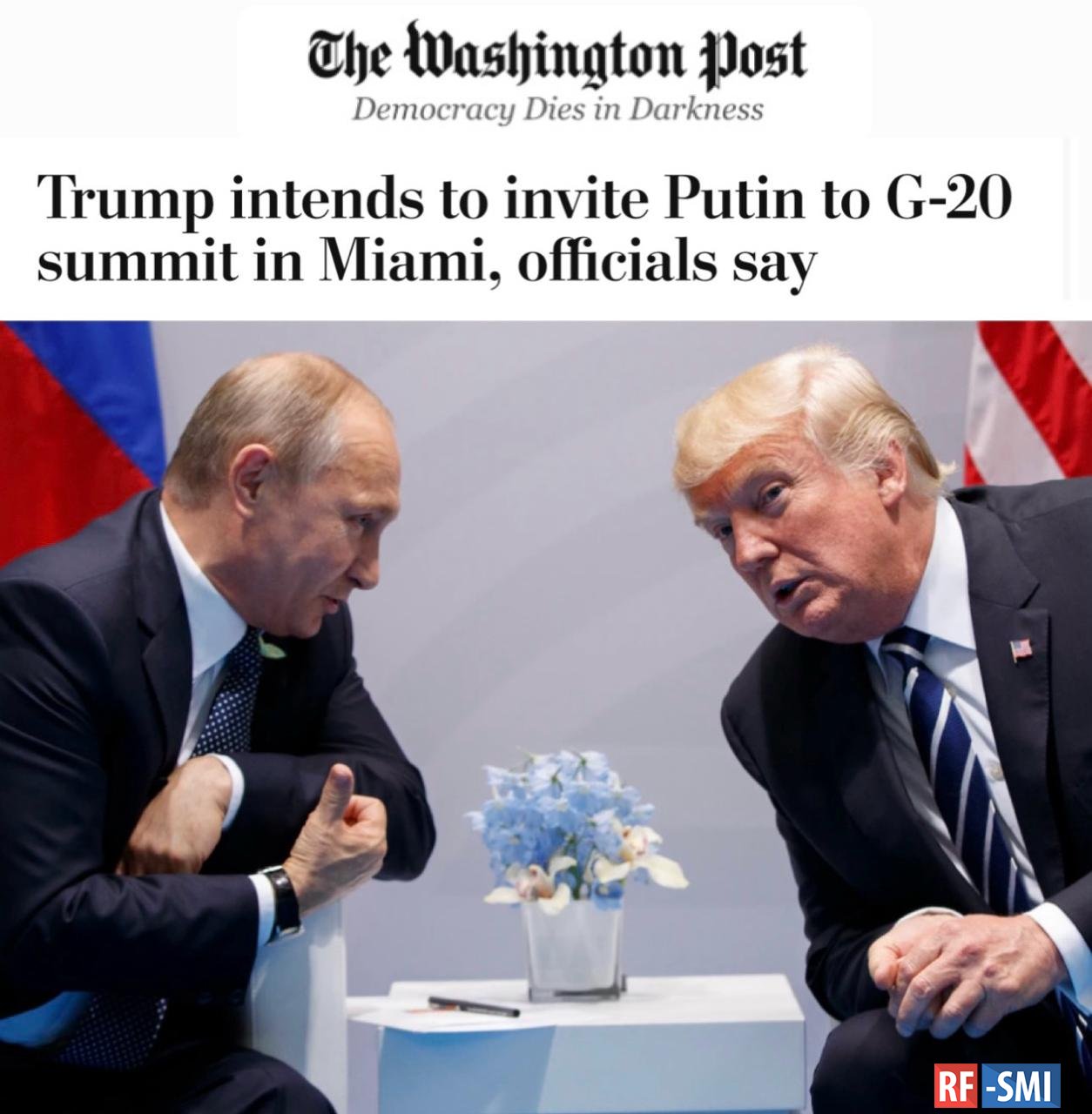 «Соединённые Штаты намерены пригласить президента России на саммит лидеров «Большой двадцатки», запланированный на декабрь на гольф-курорте Дональда Трампа Doral в Майами.