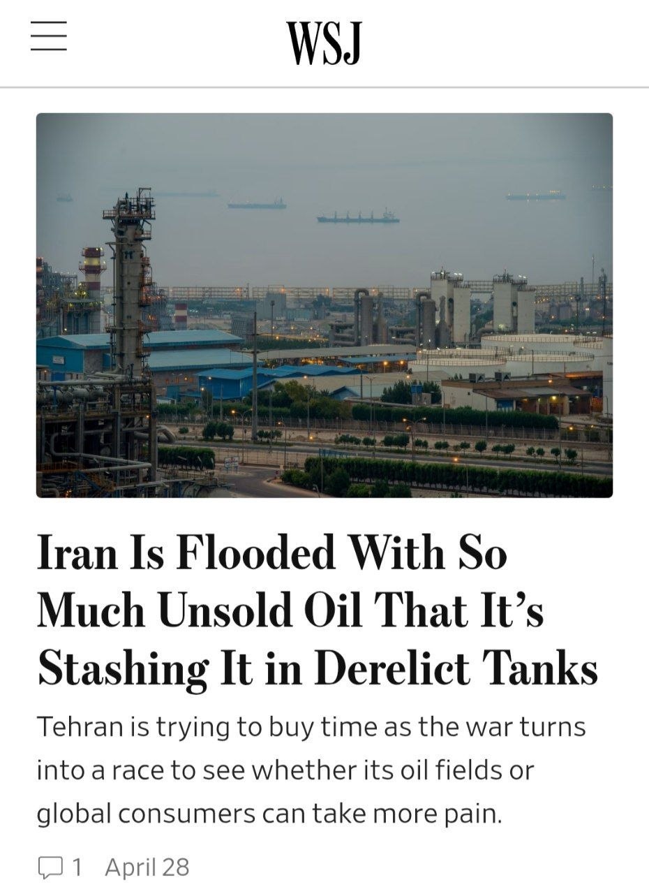 Иран отчаянно ищет новые способы хранения нефти, надеясь избежать катастрофического прекращения добычи, поскольку военно-морская блокада США блокирует его экспорт, а переговоры о прекращении войны остаются в тупике.