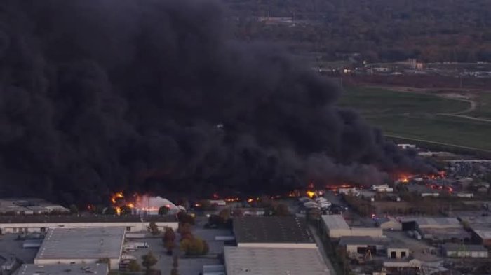 В данный момент точные причины и количество погибших неизвестно. На месте виден сильный пожар.