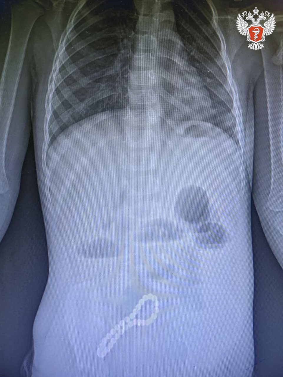 Хирурги выявили нарушение функций работы кишечника. При помощи рентгенограммы врачи поставили диагноз — инородное тело в кишечнике и приняли решение о его удалении.
