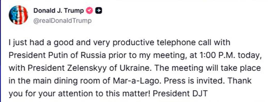 ▪️ Разговор был организован по инициативе Трампа, он хотел обсудить с Путиным ряд вопросов перед встречей с Зеленским;