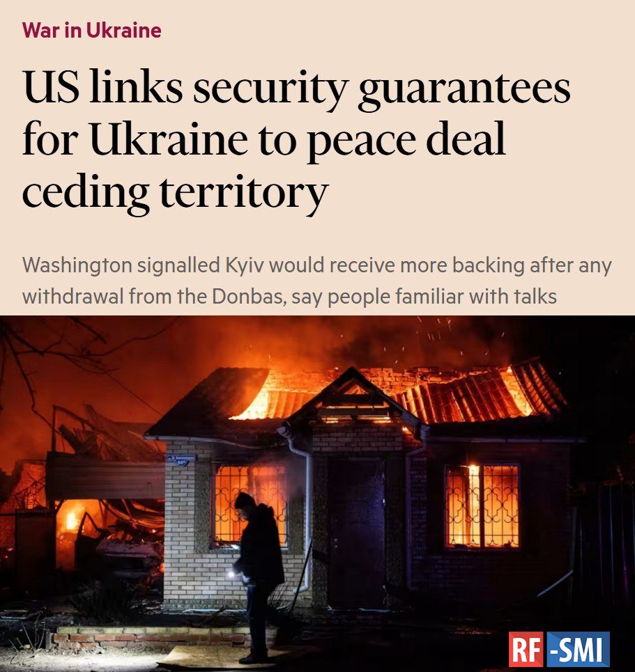 Администрация США дала понять Киеву, что гарантии безопасности Украине будут предоставлены в случае его согласия на вывод войск из Донбасса, — Financial Times.