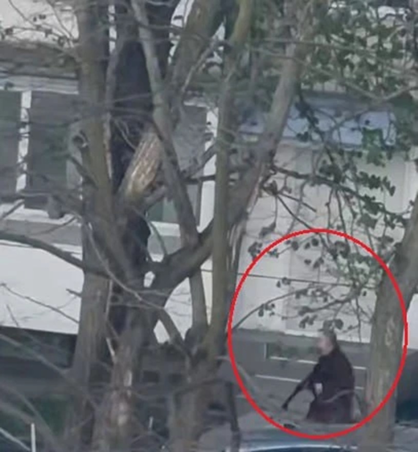Мужчина (на вид около 60 лет) перед этим ходил с винтовкой среди жилых многоэтажек и расстреливал людей в упор. Погибли по меньшей мере четыре человека. Есть раненые, в том числе ребёнок.