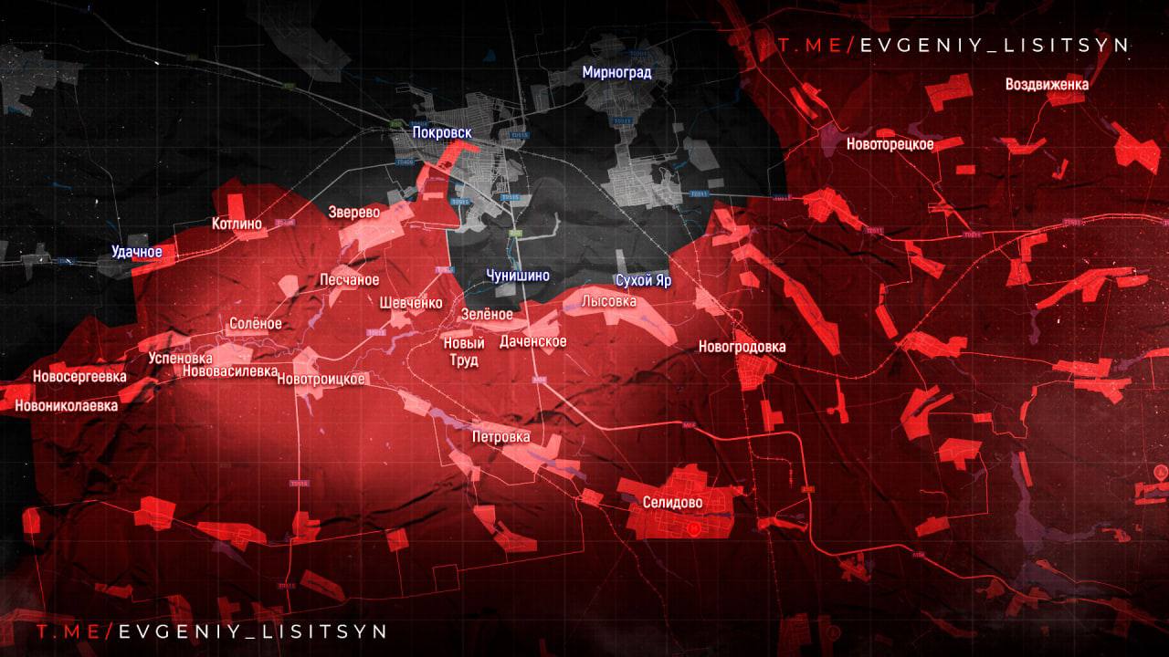 🗣Покровское направление: тяжёлые бои в Удачном, Леонтовичах и Котлино. Подтверждено освобождение Владимировки, бои идут в Шахово. Продвижение у Чунишино, Родинского, Проминя и Новопавловки. Противник контратакует у Кучерова Яра, Золотого Колодезя и Грузского.