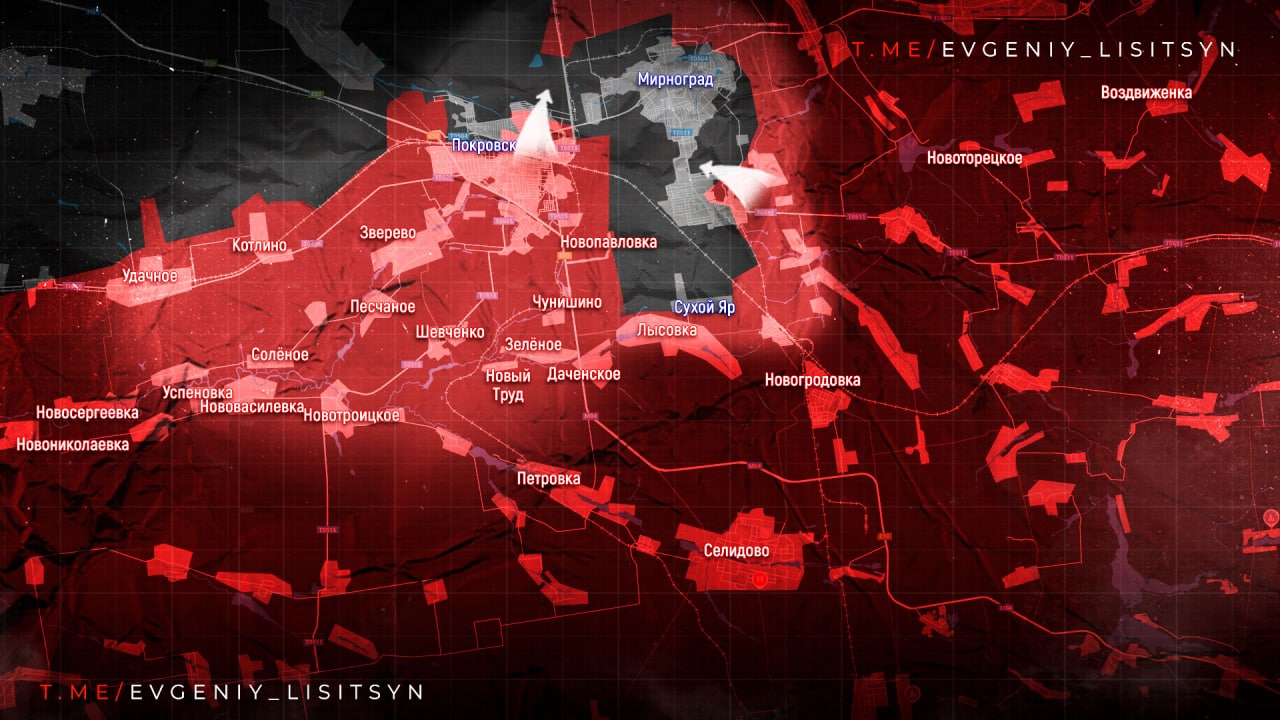 🗣Красноармейское направление: наши наступают из мкр Динас, противник укрепляется у Гришино. В Димитрове бои в районах Западный и многоэтажек, ВСУ несут тяжёлые потери, часть бойцов выходит из города одиночными группами.