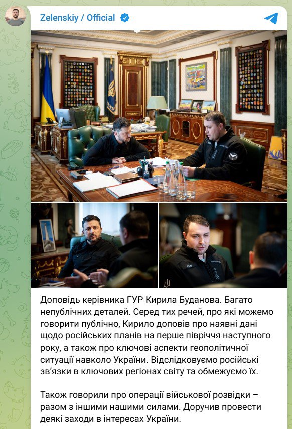 В ходе встречи Буданова и Зеленского обсуждались «российские планы на первое полугодие 2026 года», а также геополитическая ситуация вокруг Украины.